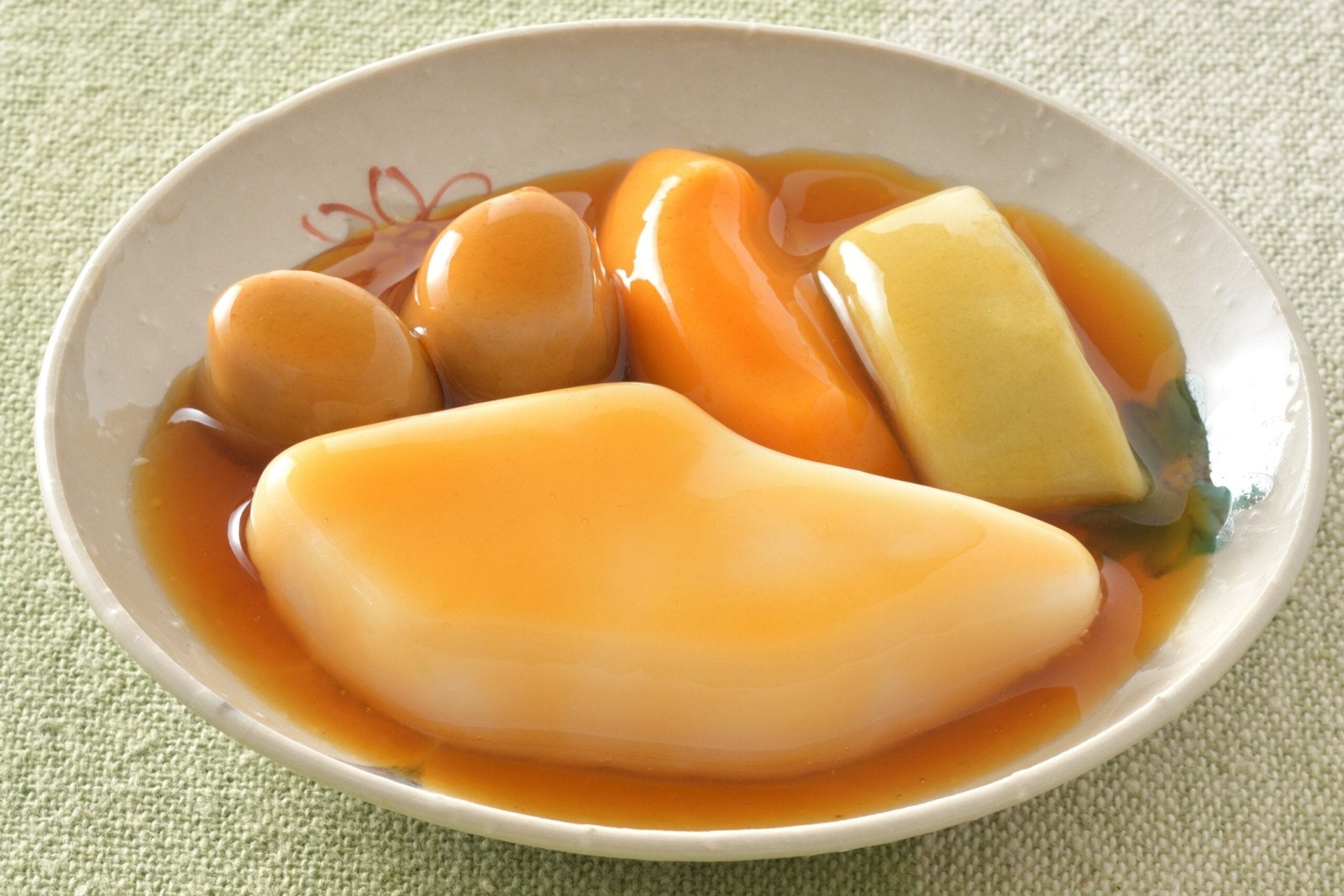 | 原料 | 植物油(日本產)、發酵調味料、魚糜、澱粉分解物、牛蒡泥、大蔥泥、醬油、砂糖、濃縮胡蘿蔔汁、牛奶蛋白、蛋白粉、膠原蛋白肽、鯛魚提取物調味料、蘿蔔泥 生薑、海帶提取物、調味油、牛蒡提取物粉末、加工醬油、動物蛋白水解物、鹽、粉末狀油、澱粉、馬鈴薯提取物調味料/海藻糖、膠凝劑(增稠多醣)、增稠劑多醣、抗氧化劑(維生素C) , (部分含有小麥、雞蛋、牛奶成分、大豆、豬肉和明膠) |